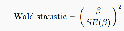 각 계수의 통계적 유의성은 유의확률(p-value)을 통해 판단하며, 일반적으로 p < 0.05일 경우 통계적으로 의미 있는 변수로 간주한다. p값은 Wald 통계량(Wald statistic)을 기반으로 계산된다. Wald 통계량은 각 회귀계수(β)가 0과 유의하게 다른지를 검정하기 위한 지표로, 다음과 같은 공식으로 산출된다: