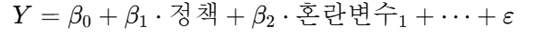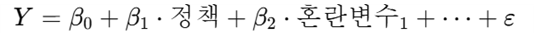 회귀분석에서의 혼란변수 통제는, 정책효과 외에도 종속변수에 영향을 줄 수 있는 다른 변수들(혼란변수)을 모두 측정해서 회귀모형에 포함시키는 방식이다.